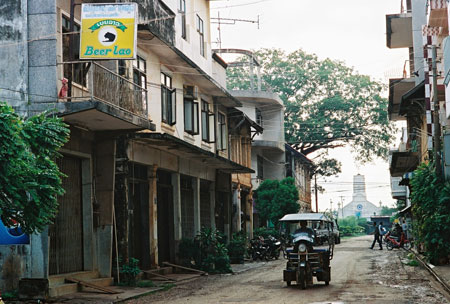 | この日泊った宿の近所。トゥクトゥク進行方向に少し歩くとメコンに出ます。 |