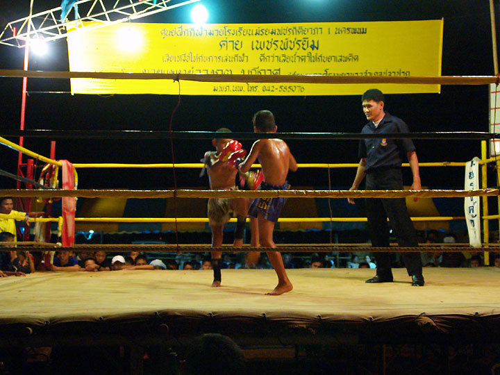火曜日のムエタイ大会。デジカメの説明書を読んでから挑みました。ちなみに感度はISO1600です。3200で撮った分はノイズが目立っていました。 試合は3ラウンド制で熱戦が繰り広げられていました。