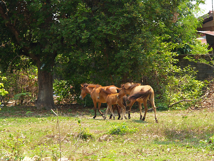 レーヌナコンの銀行へ行った帰り空き地で草を食んでいるお馬の親子を見つけました。 珍しかったので写真を撮ろうと思い恐る恐る近寄ったら、 向こうはもっと恐ろしかったのか日本の童謡のリズムで去って行きました。 今日は馬の見物ではなく EHCHANGE の看板のある銀行へ両替に行ったのですが、 外貨の取り扱いはしていませんでした。