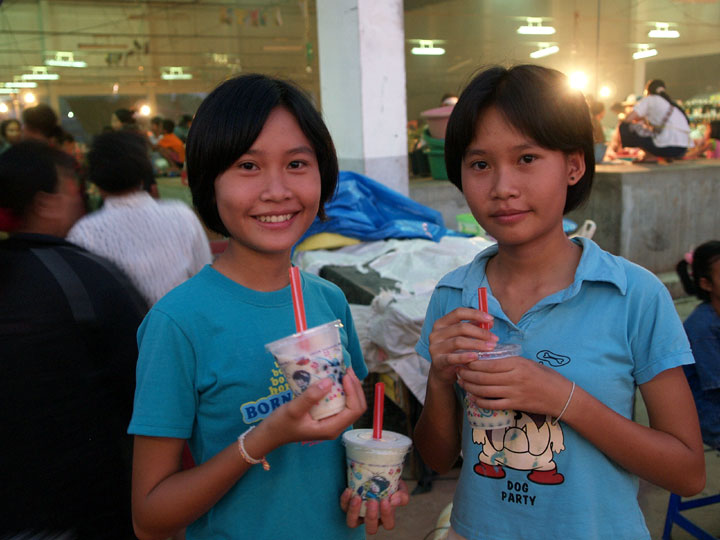 今日は金曜夜市で中学生の双子姉妹に会いました。 髪型が違うせいか言われるまで気づきませんでした。 左側の笑っている子は