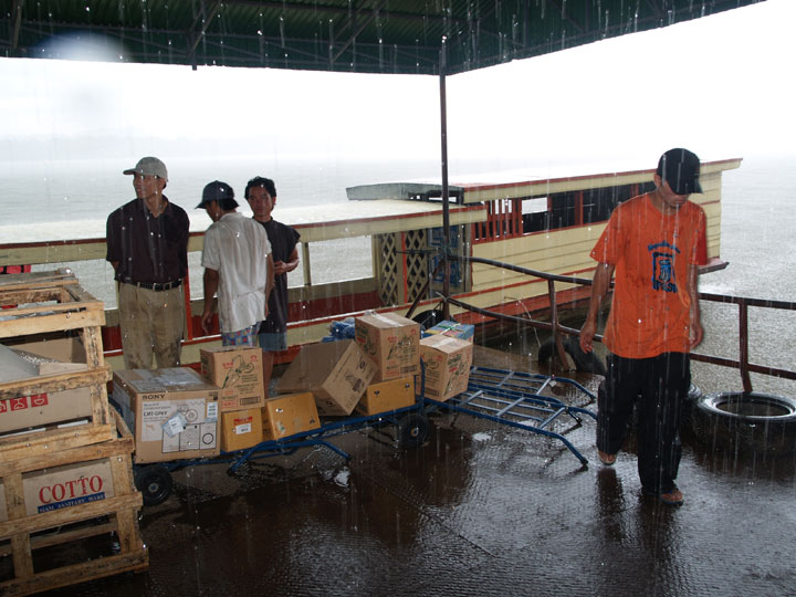 今月もビザ書き換えのためラオへ行ってきました。 朝からまずまずの天候でしたが、帰りの舟が出航した頃から雨が降り始め ナコンパノムに着いた時には大降りなりました。 しばらく船着場で雨宿りをしましたがやむ様子もないので ソンクラーン並にずぶ濡れになりながらソンテウ乗り場まで歩きました。