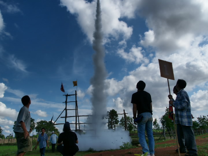 レーヌナコンに出かけたらブン・バン・ファイをしていたので 立ち寄ってみました。 先週見物した本場のそれとはまるで規模が違い、 祭りではなくコンテストでした。 それでも雨を祈る思いは皆さん同じなのかも知れません。 物干し竿が描くロケット雲は見応えありました。 ただ昨日の大雨でぬかるんだ道端で空を見上げながら 後の祭り、という言葉が脳裏に浮かびました。