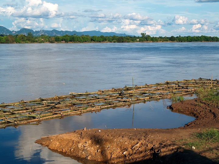 来月中旬ボートレースのお祭りがあるそうで、 浮かんでいる筏はその準備だそうです。 レース用の舟にしては大きいような気がしますが、 何を造っているのでしょうか、 当日はメコン沿いに賑やかに出店も並ぶそうで楽しみです。 同じ日にメコンをずっと遡ったポンピサイでは、 川から巨大な火の玉が発生するそうで、ぜひ見に行きたいところですが やはり地元優先でしょうか。