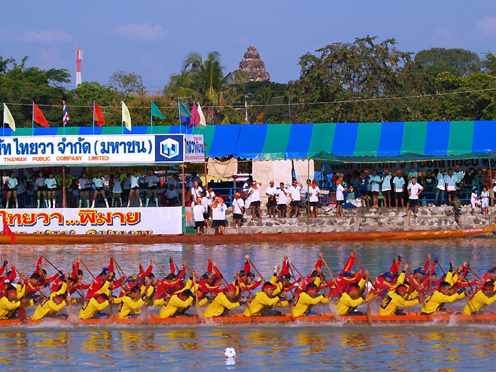 昨日から始まったボートレース、 お祭り最終日の今日が決勝です。 メコンに比べるとピーマイの川はプールのように感じましたが 小さい分だけボートを漕ぐ様子は良く見え バックに遺跡が見えていたりするので ここならではの風情がありました。