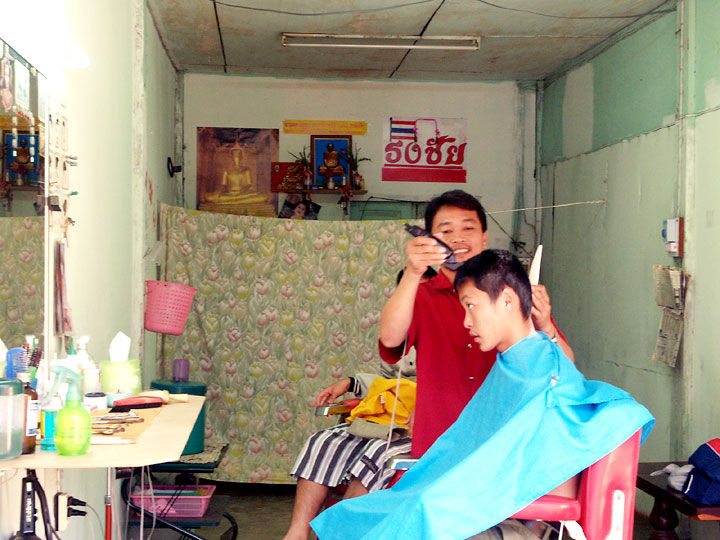 ノンヒー村の数箇所、床屋を周った経験では髭剃りは頼めばしてくれますが 粉を振りかけただけでジョリジョリされるので痛くて忍耐を要します。 ここでも期待はしてなかったのですが、前のお客さんがクリームを使って貰っていたので 髭剃りも頼むことにしました。 頼みもしないのにマッサージや耳掃除までしてくれました。気持ちの良い40バーツでした。