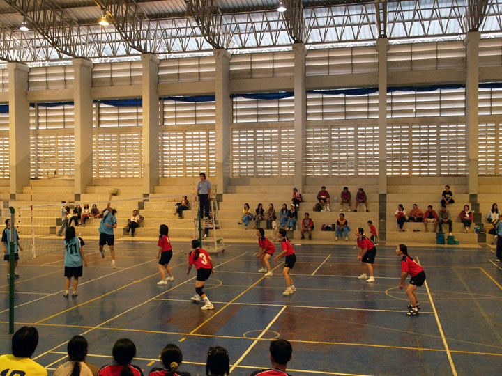 世界的にはクリスマスイブですが ナコンパノム的には病院対抗運動会の日です。 写真は看護婦さん達によるお遊戯の一場面、 ボクシングではありません。 地元ではエアロビクスと言うそうです。 体育館ではバレーボールをやっていました。 最近ホンダの新車を買った看護婦のタムさんは、 シューズを用意する余裕がなかったのか サンダルで出場していました。
