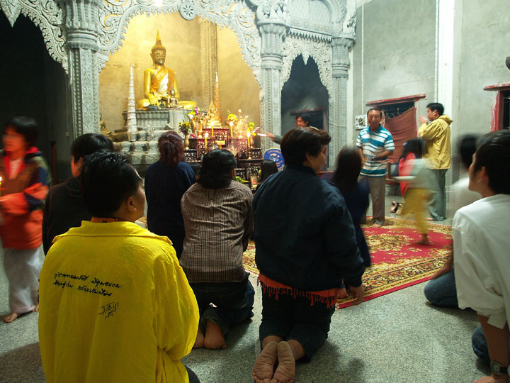 この街にはベトナム時計という立派な 時計塔があるのできっと人々が集まりカウントダウン をしていることだろうと時間を見計らって行ってみましたが 近くのバーで酔っ払いが騒いでいるだけでした。 バイクで家に戻る途中爆竹や玩具の花火が鳴り響き 年が変わったことを知りました。 家に着くと隣のお寺にポツポツと人がお参りに集まっていました。