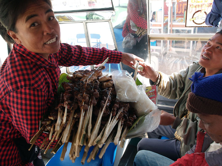 バンコクの向こうまで仕事探しに行く途中です。 夜行バスより列車の方が好きなので半日つぶしてウボン周りで行きました。 写真はナコンパノムを出て一時間、タートパノムの停留所、ここで10分ほど停車します。 仕事探しはやめにしてふらふら旅をしたい心境でしたが滞在費がもう尽きるので そうも言ってられずタバコを吸って再びウボン行きのバスに乗りました。